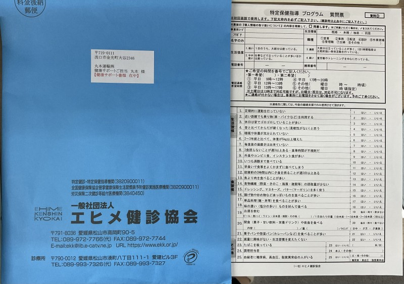 社員会議の後に エヒメ健診協会の方に、第一回目の特定保健指導をしていただきました。